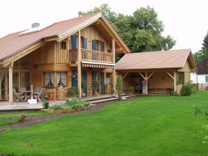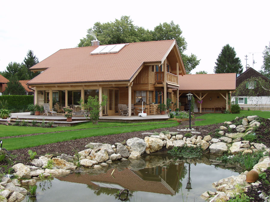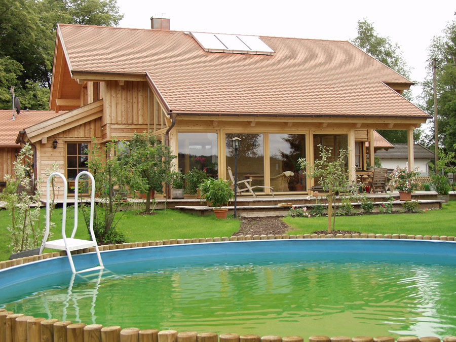 U okolini Münchena se na velikom zemljištu proteže obiteljska kuća s velikim plivačkim bazenom i ribnjakom. Sama arhitekturna osnova prati tipičnost danog prostora s određenim naglascima, koji odudaraju od konvencionalnosti. Tako se ističe prozor u kutu u prizemlju kuće, grilje u plavoj boji te zimski vrt, koji je centar svjetlosti i topline. Drvena fasada od ariša skupa sa staklenim omotačem ostvaruje odnos puno-prazno.