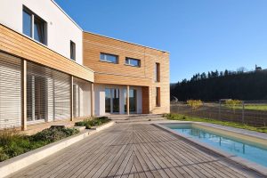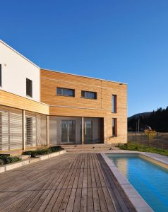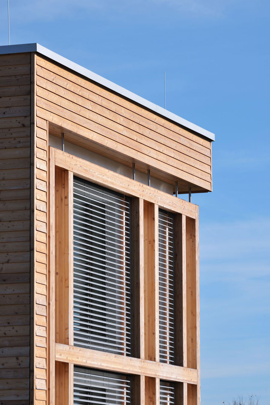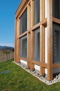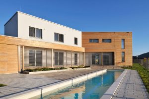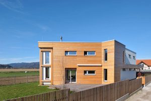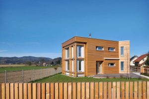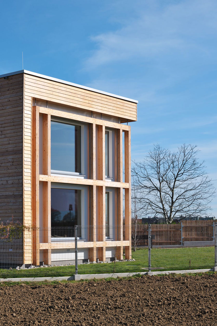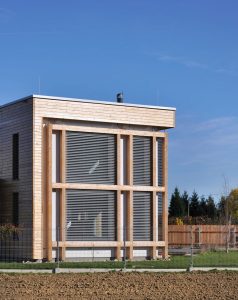 Obiteljska kuća bila je osmišljena s energetskom štedljivošću u vidu, zato je bila upotrebljena drvena masivna gradnja. Ekstenzivna zelena površina prekriva dio krova, u unutrašnjosti se dnevni