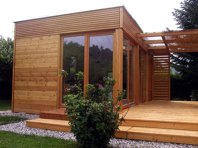 Modularna jedinica koju najsnažnije opredjeljuje jasna arhitektura ravnih i nenametljivih oblika s velikim staklenim površinama je u ovom slučaju upotrijebljena kao samostalni zimski vrt u funkciji odvojenog objekta uz stambenu kuću. Drvo kao vanjski zaštitni sloj nosive konstrukcije predstavlja izniman dizajnerski element koji se lijepo uklapa kako u urbanu tako i u ruralnu sredinu te svojom raznolikošću nudi bezbroj građevinskih mogućnosti koje zgradi daju novu, veću vrijednost.