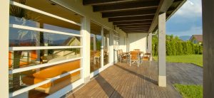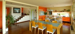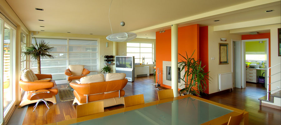 Dopadljiva arhitektura i spretno kombiniranje drva s ostalim materijalima. Otvorenost i povezanost obojenih i svijetlih prostora. Premošćenje velikog raspona čeličnim nosačem.