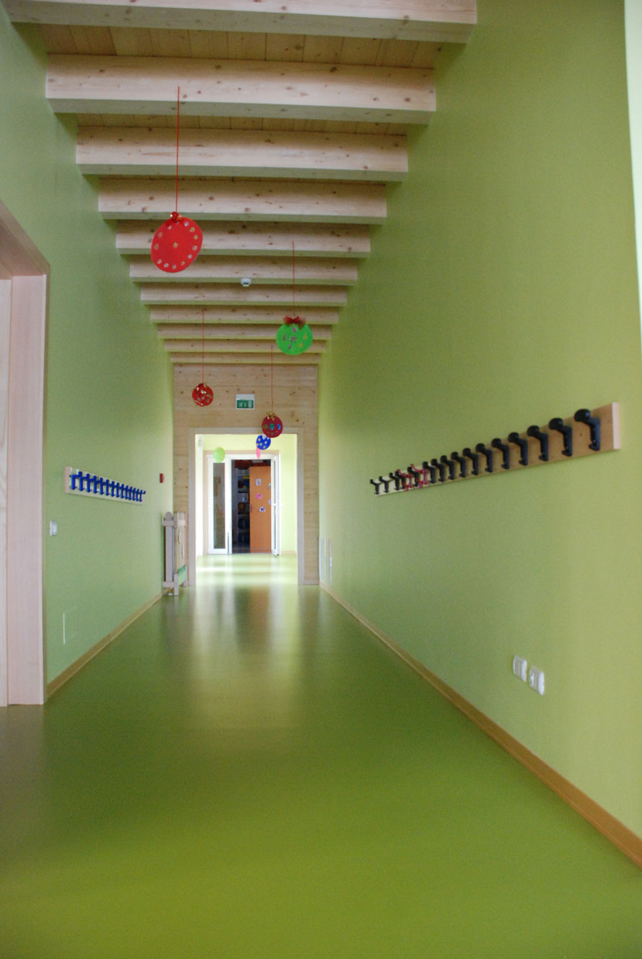 Svjesnost o važnosti trajne gradnje je odgovorne u općini Calcinaia u sjevernoj Italiji navelo na odluku za školu izgrađenu po principima drvene masivne gradnje. Na javnom natječaju ih je među brojnim ponudama konkurencije svojom kvalitetom i primjerenom cijenom najbolje uvjerila ponuda Rika. Školu obilježava toplina izvana i iznutra, kako bojama tako i materijalom, jer se u unutarnjim prostorima i na vanjskom obodu prepliću tople boje, a drvene masivne stijene nadopunjuje drveni strop.