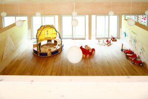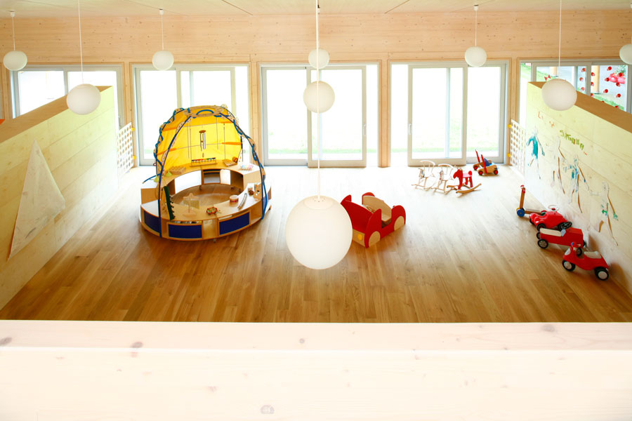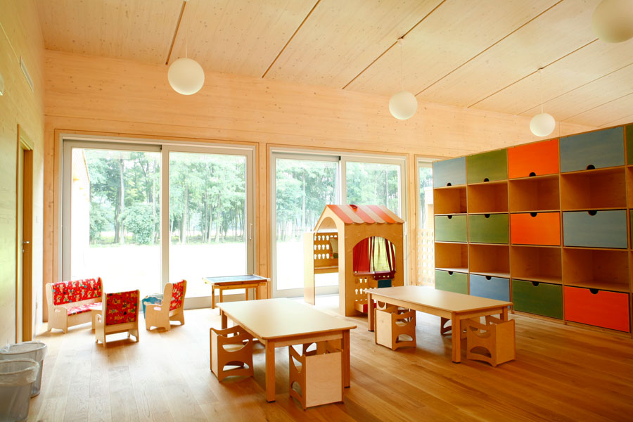 Na prelijepoj lokaciji u blizini jezera Como nalaze se dva atrijska objekta, koja se prostiru na površini od 600 m2 (vrtić i sporedni servisni objekt). Zgrade odlikuje potpuno drvena struktura koja se pokazuje kroz konstrukciju, vanjsku fasadu i unutrašnje zidove. Konačno je rješenje nominirano za najbolji arhitektonski projekt 2007. godine na natječaju Leafawards.