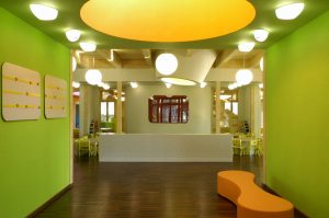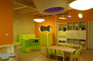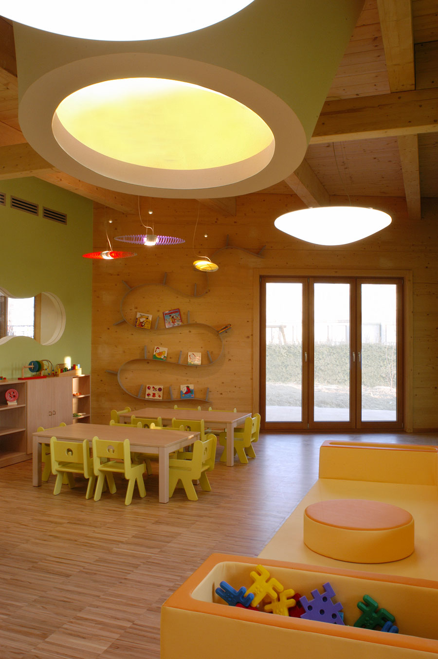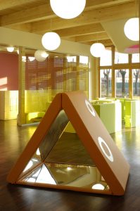 Arhitektura koja se pokušava približiti svijetu mašte svojih malih korisnika. Upotreba drveta, materijala koji jamči toplinu i ugodu te šarena i domišljata unutarnja oprema potiču dječju kreativnost i razvoj. Vrtić Stella – Tetra pak jedan je od kandidata za škotsku nagradu »Architecture and design for young children International award winners 2005«.