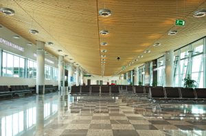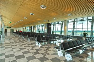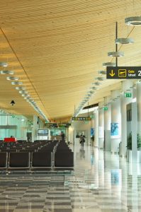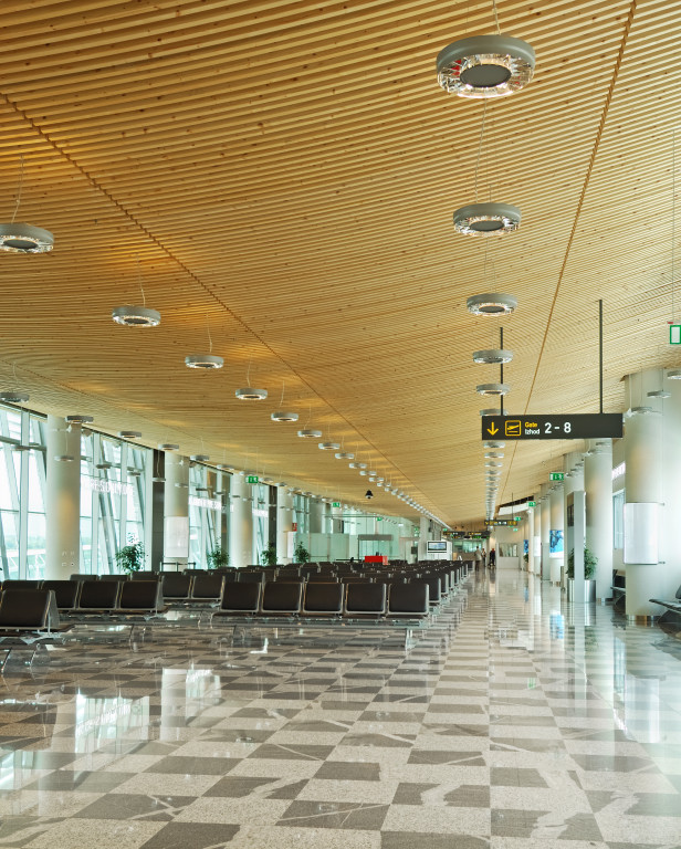 Na obnovljenom dijelu zgrade zračne luke oblikovan je prozračni strop od drvenih ukrivljenih lamela. Oblik slijedi aerodinamičnoj konstrukciji, razbija monotonost velike čekaonice te stvara poseban ugođaj za posjetitelja u konačnoj pripremi za polijetanje.